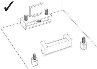 - بلندگوها را با فاصله بیشتر از 50 سانتیمتر از یکدیگر نصب کنید. اگر فاصله بین بلندگوها بسیار کم باشد، Sound Field Optimization به درستی انجام نخواهد شد.
