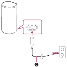 Sluit de netsnoeren (bijgeleverd) aan op de AC-ingangen van de vier luidsprekers en vervolgens op een stopcontact.