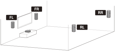 - Hvis du installerer høyttalere som følger, utfør [Sound Field Adjustment] under [Manual Speaker Settings].