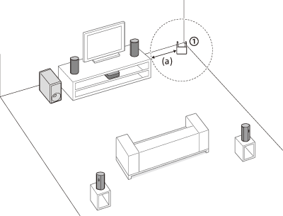 [设置] - [高级设定] - [扬声器设定] - [无线扬声器设定] - [无线电频率频道]设定为[关],然后设定为[开]。 - 如果附近有无线LAN设备或微波炉等产生电磁辐射的设备,请将扬声器系统远离该设备放置。