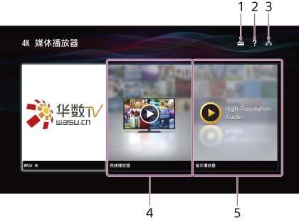 主菜单是播放各种内容的网关。也可使用主菜单上显示的图标检查4K 媒体播放器的状态。