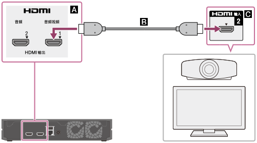 要观看受版权保护的视频,将4K 媒体播放器连接至电视机的HDMI输入2插孔。