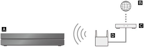 如下图所示,通过Wi-Fi连接将4K 媒体播放器连接至互联网。