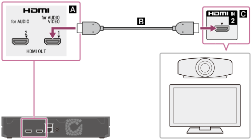 Pour regarder des vidéos protégées par des droits d'auteur, connectez le lecteur multimedia 4K à la prise HDMI IN 2 de votre téléviseur.