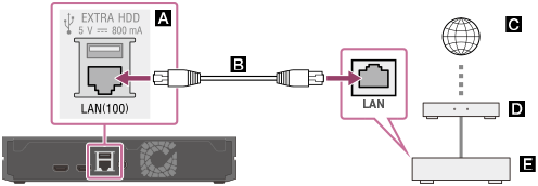 Conecte o Reprodutor Multimídia 4K à Internet usando uma conexão LAN com fio, como ilustrado abaixo.
