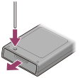 - Retire o compartimento de bateria, pressionando o botão com um objeto pontiagudo fino, como a ponta de uma caneta.