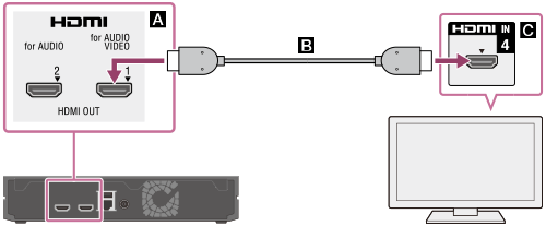 : Tomada HDMI OUT 1 (for AUDIO VIDEO) do Reprodutor Multimídia 4K