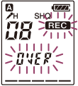 ve “OVER” yanıp söner ve IC kaydedici, kayıt duraklatma modunda durur.