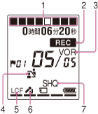 停止中または録音中はメニューで設定されている録音モードが、再生中はそのファイルの録音モードが表示されます。