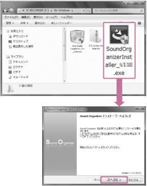 - [SoundOrganizerInstaller_V140](または[SoundOrganizerInstaller_V140.exe])をダブルクリックする。