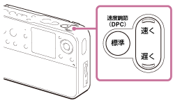 - 再生中に速度調節(DPC)速くボタンまたは遅くボタンを押して、再生速度を調節する。