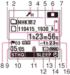 停止中はメニューで設定されている録音モードが、再生中または録音中はそのファイルの録音モードが表示されます。