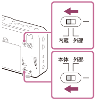 - ホールドスイッチが「切」になっていること、また内蔵/外部AMアンテナ切り換えスイッチが「内蔵」、本体/外部FMアンテナ切り換えスイッチが「本体」になっていることを確かめる。