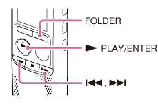 Enquanto o gravador de IC está no modo de paragem, pode selecionar uma pasta e um ficheiro para gravação, reprodução ou edição.