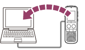 Можно скопировать файлы и папки с цифрового диктофона на компьютер для хранения.