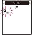 - 在停止或录音模式下,选择DISP/MENU - “VOR”,然后 按