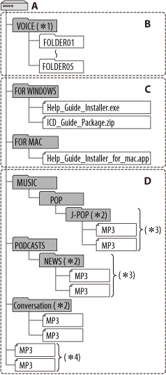 *3 IC录音机可识别传输到IC录音机上的多达8层的文件夹。