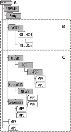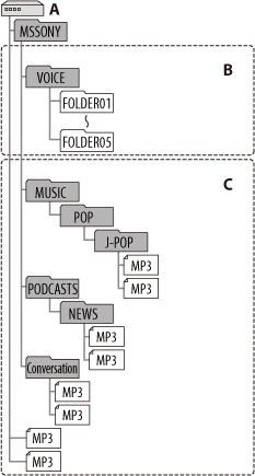 *4如果单独传输MP3文件,这些文件将被分类在“无文件夹”中。