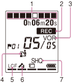 当IC录音机处于停止或录音模式时,录音模式指示显示在菜单中设定的录音模式,当IC录音机处于播放模式时,显示当前的录音模式。