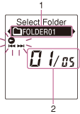 将显示用于IC录音机录制文件的文件夹(VOICE文件夹下的文件夹)。