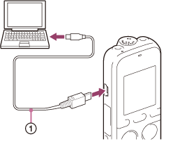 - 将IC录音机连接到电脑之前,请确认电池已插入IC录音机中。