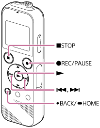 I HOME-menyen kan du velge en funksjon, søke etter innspilte filer eller endre innstillingene på IC-opptakeren.