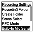 Settings - Recording Settings - Built-In Mic Sensitivity i HOME-menyen, og trykk deretter på