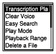Medan uppspelningen är i vänteläge, välj ”Transcription Playback Mode” på OPTION-menyn, och tryck sedan på