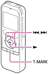 - أثناء التسجيل أو الاستماع أو ايقاف التسجيل مؤقتاً، اضغط T-MARK في الموضع الذي تريد اضافة علامة مقطوعة إليه.