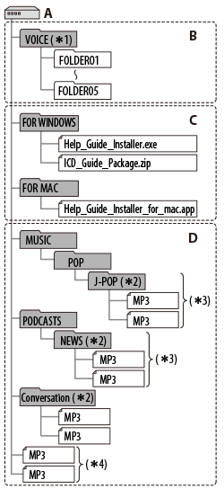 *1 Even if a file is transferred directly under the VOICE folder, it will not be displayed on the