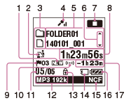 Muestra las indicaciones siguientes, en función del modo de funcionamiento actual de la grabadora IC.