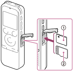 - 메모리 카드가 인식되지 않을 때에는 일단 뺐다가 IC 레코더에 다시 넣으십시오.