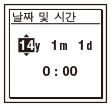 배터리를 처음 삽입하는 경우나 배터리를 재삽입하거나 새 배터리로 교체하는 경우, "날짜와 시간을 설정하십시오." 애니메이션이 나타난 다음, 시계 설정 표시창의 연도 부분이 깜빡이기 시작합니다.