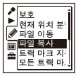 선택한 파일을 내장 메모리에서 메모리 카드의 원하는 폴더로 복사하거나 메모리 카드에서 내장 메모리의 원하는 폴더로 복사할 수 있습니다. 이 기능은 백업을 저장할 때 유용합니다. 조작을 시작하기 전에 복사용으로 사용할 메모리 카드를 메모리 카드 슬롯에 삽입하십시오.