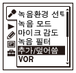 메뉴에서 "추가/덮어씀"을 "추가"로 설정하면 재생 중인 파일에 새로운 부분을 추가할 수 있습니다. 추가한 부분은 현재의 파일 뒤에 녹음되고 그 파일의 일부로 계산됩니다.