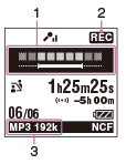 Відображає такі символи залежно від поточної операції цифрового диктофона.