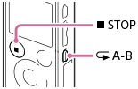STOP. Цифровий диктофон буде зупинено, однак налаштування повторюваного відтворення A-B залишиться. Щоб відновити повторюване відтворення A-B, натисніть кнопку