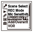 (мікрофон), функція фільтра записування не працюватиме. - Якщо встановити налаштування «Recording Filter», коли для параметра «Scene Select» встановлено інше значення, аніж «OFF», вибране налаштування «Scene Select» буде скасовано.
