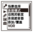 可以为要录制的文件设置录音模式。在开始录音前设置该菜单项目。