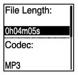 برای مشاهده اطلاعاتی درباره یک فایل خاص، فایلی که ضبط کرده اید را توسط ضبطکننده آی سی یا یک فایل موسیقی انتخاب کنید و "File Information" را از منوی OPTION انتخاب نمایید. سپس میتوانید