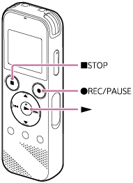REC/PAUSE را فشار داده و نگه دارید تا برای انجام ضبط، ضبط کننده آی سی را در حالت مکث قرار دهید. این قابلیت به شما کمک میکند تا میزان صدای ضبط را بدون ضبط دادههای صوتی غیرضروری، تنظیم کنید.