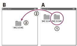 - فایل ها یا پوشه هایی را که می خواهید به کامپیوتر منتقل کنید کپی نمایید.فایل ها یا پوشه هایی را که می خواهید از "IC RECORDER" یا "MEMORY CARD" به دیسک محلی کامپیوتر منتقل کنید بکشید و رها کنید.