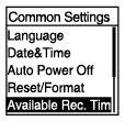 Settings" - "Common Settings" - "Available Rec. Time" را از منوی HOME انتخاب کنید و سپس