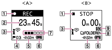 Indica o estado de gravação atual do gravador de IC.