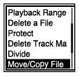 - Com a reprodução em suspensão, selecione “Move/Copy File” no menu OPTION e, de seguida, prima