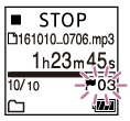 - Com a gravação em curso ou em pausa ou com a reprodução em curso ou em suspensão, prima T-MARK no ponto ao qual pretende adicionar uma marca de faixa.