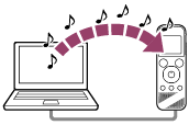 Pode copiar música e ficheiros áudio (LPCM(.wav)/MP3(.mp3)/WMA(.wma)/AAC-LC(.m4a)) de um computador para o gravador de IC ao arrastar e largar.