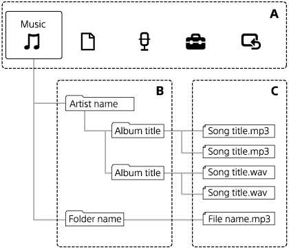 Segue-se a ilustração da estrutura de pastas e ficheiros que pode ver no gravador de IC.