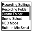 Settings” - “Recording Settings” - “Create Folder” no menu HOME e prima
