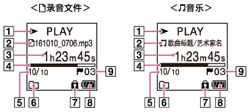 - 上面所示的画面用于说明目的。它们可能与在IC录音机上实际看到的画面有所不同。